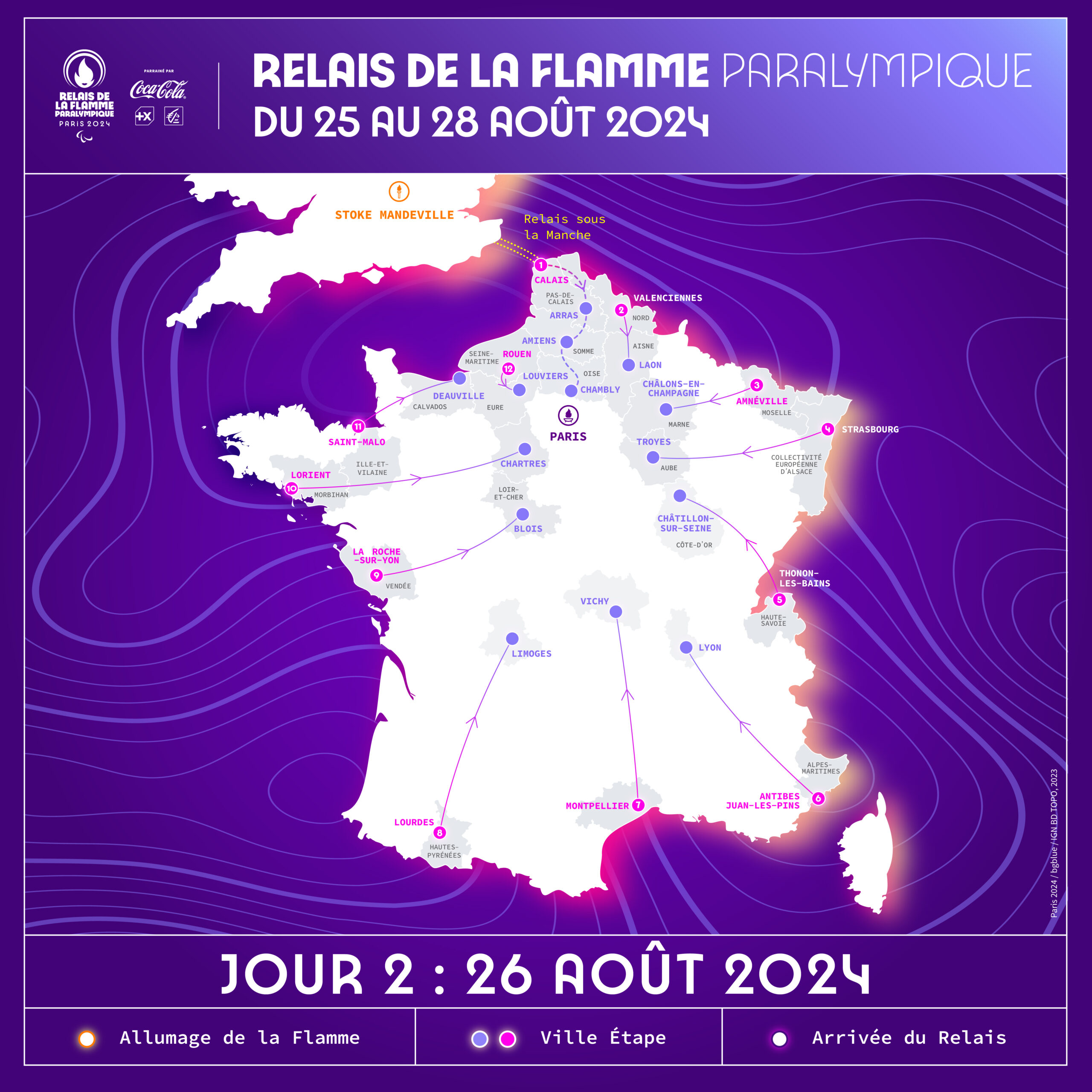 Pour la première fois de son histoire, la France va accueillir les Jeux Paralympiques d’été sur son territoire du 28 août au 8 septembre 2024. Afin de préparer le public à les célébrer, la Flamme Paralympique arrivera en France le 25 août 2024 pour 4 jours de relais d’une grande intensité dans une cinquantaine de villes de toutes les régions de l’Hexagone.