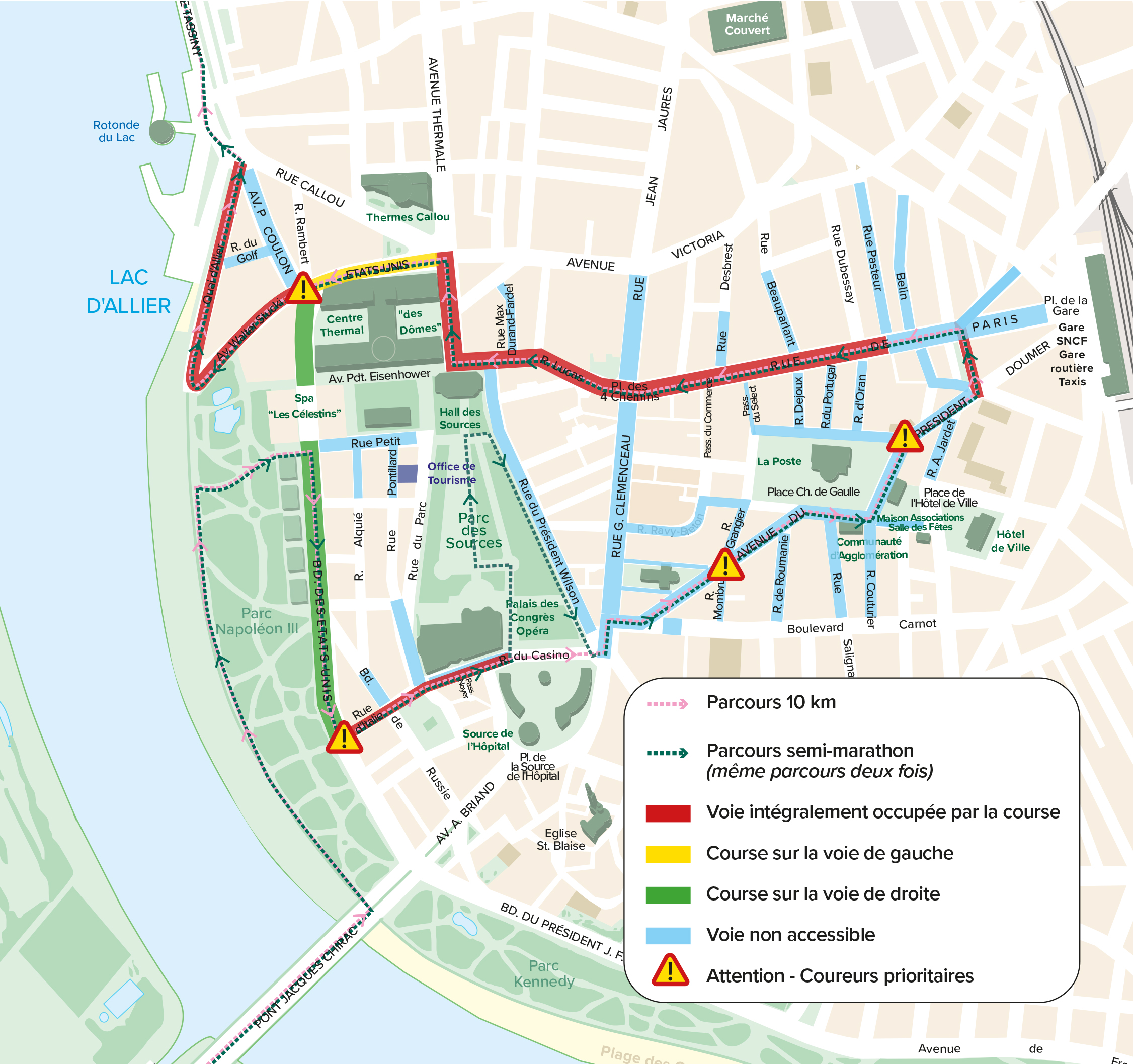 Cette année encore, les Foulées Vichyssoises feront battre le cœur de la ville avec trois distances emblématiques — 5 km, 10 km et 21 km — ainsi que des courses dédiées aux enfants. Un événement festif, sportif et convivial qui traversera les plus beaux lieux de Vichy, dont le parc des Sources, véritable écrin du parcours.